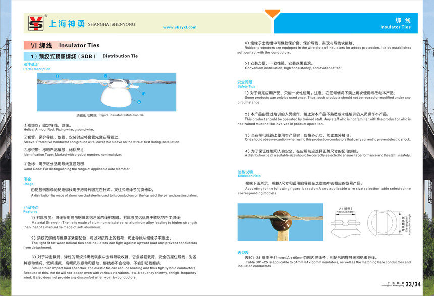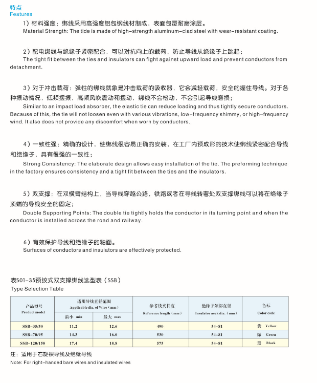 由铝包钢制成的配电绑线用于把导线固定在针式,支柱式绝缘子的质槽中。