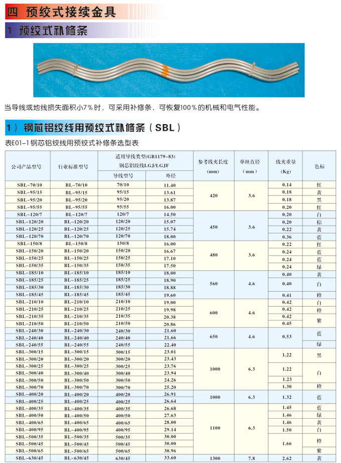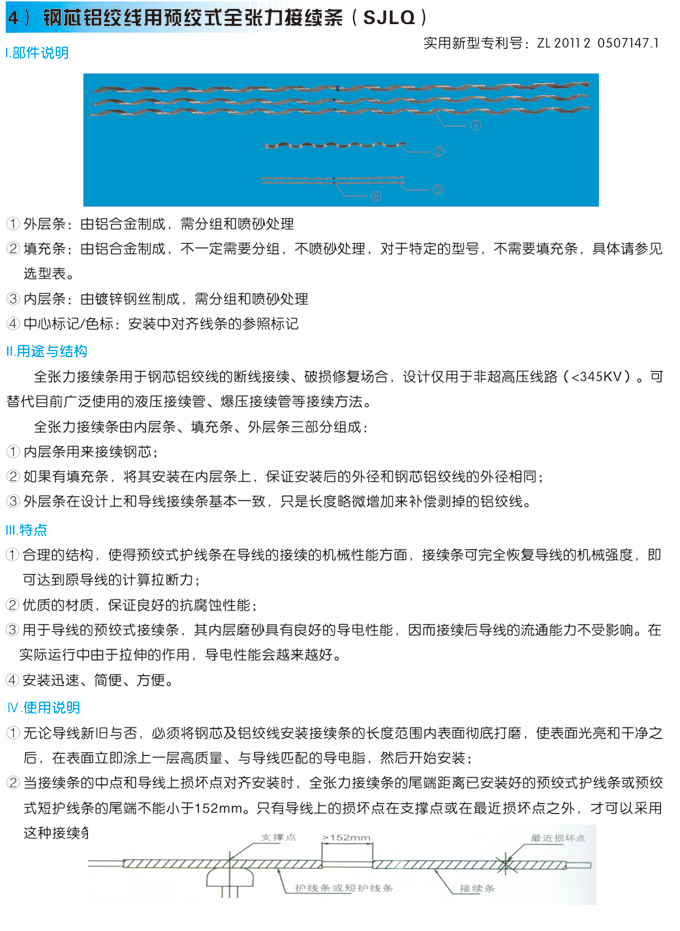 当导线或地线损失面积小7%时,可采用补修条,可恢复100%的机械和电气性能。